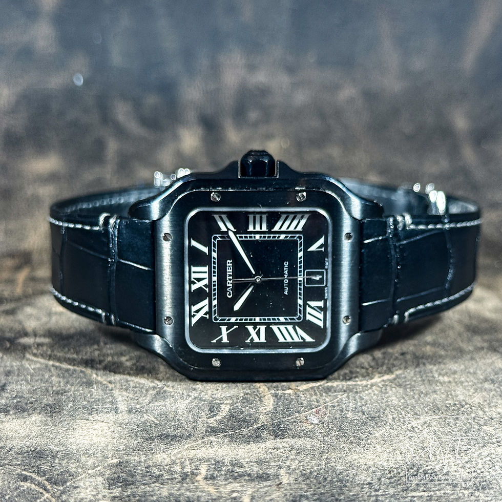 The Cartier Santos WSSA0039 is a modern icon that combines heritage design with sporty elegance. Featuring a stainless steel case, black ADLC bezel, and Cartier’s signature Roman numeral dial, this model comes equipped with the convenient quick-switch system allowing seamless changes between its included rubber and leather straps. Powered by the automatic Caliber 1847 MC movement, it offers reliable performance with timeless Cartier sophistication.